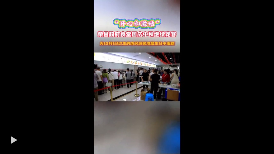 10月1日,Rongchang的相关部门工作人员告诉Repo当天中午中午,有2700人吃晚餐,在自助餐厅里用550公斤米饭蒸了86片大米。 250公斤炖的鹅提前售罄,当天中午送出15个生日蛋糕。仅在10月1日,餐厅才准备了650公斤长的猪肉和2,000公斤蔬菜,以保证为游客提供软食物。