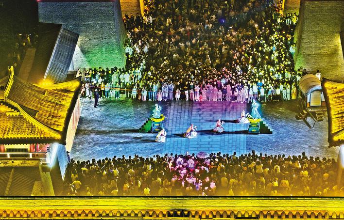 人山人海! 10月5日,夜游襄阳桐城风景区。当晚,60%以上的游客来自河南、湖南及周边城市。 (湖北日报全媒体记者刘树松、通讯员王虎提供)