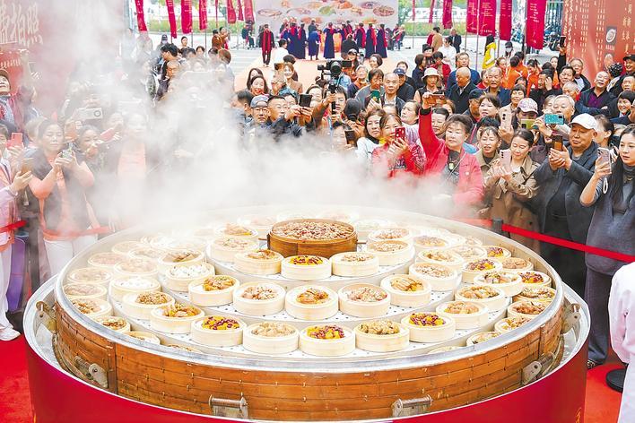 湖北日报讯(记者杨文毅)10月29日上午,重九节期间,武汉江夏燕尔格艺术宴会中心热气腾腾,竹香扑鼻。独具特色的非物质文化遗产蒸菜银经济消费仪式“老人咀嚼宴,蒸情江夏”在此举行。当来自湖北的直径4米巨型轮船开航时,活动气氛达到了高潮。