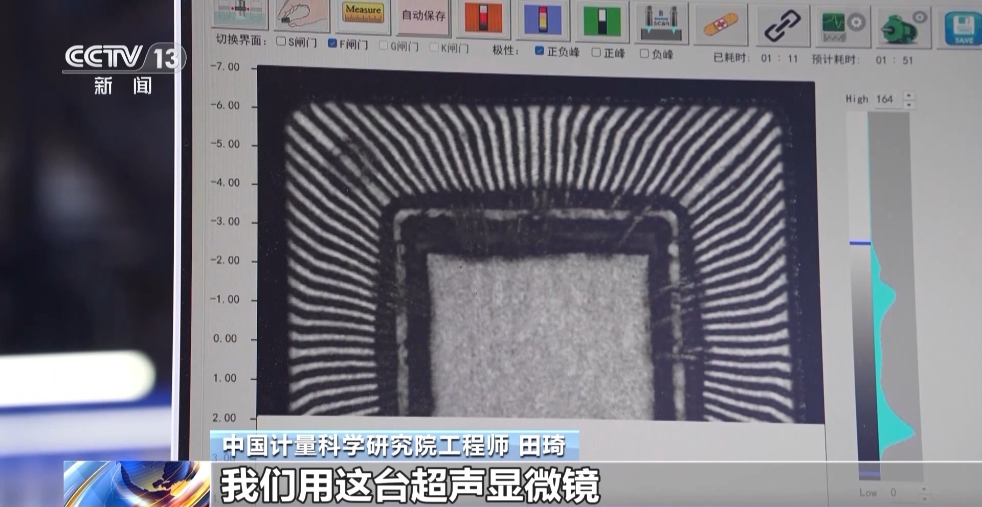 中国计量科学研究院工程师田琪:我们用这个超声波显微镜来检测芯片,类似于B超。通过发现芯片中的问题,可以优化集成电路工艺,加速集成电路的发展。
