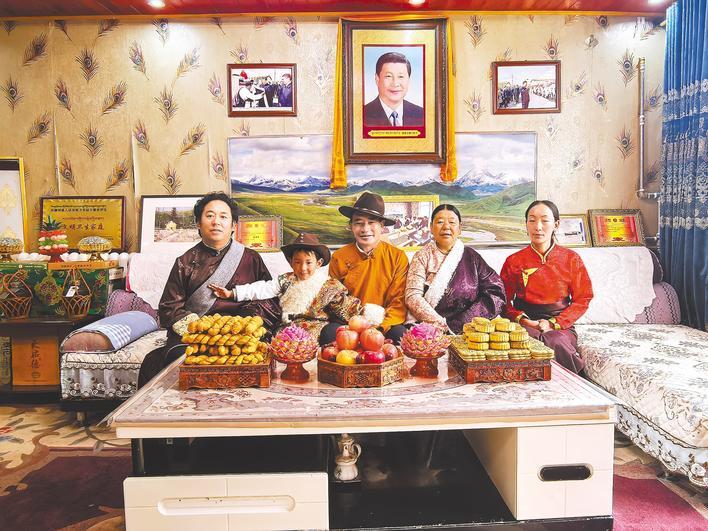 索南凯兰讲述家人的幸福 索南凯兰(中)与家人合影。全家人建立了“生态碗”,人均年收入从2万元增加到3万元以上。他以前骑马放牛,然后骑摩托车巡逻牧场。 2024年,我花了7万多块钱买了一辆小型货车。在家开一家卖旅游纪念品的小店,一年可以增加收入1000多元。房子已经装修完毕,安装了玻璃屋顶和太阳能热水器,居住起来更加舒适。