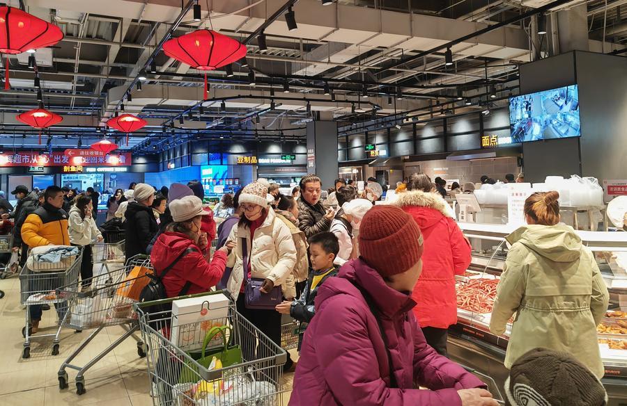 2025年2月8日,人们在中国首都北京市石景山区一家超市购物(图片来源:新华社)