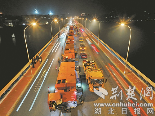 京中网讯(湖北日报)(记者刘雪松通讯员叶本林余敬耀)12月18日22时,襄阳长虹大桥桥面普修工作开始,多项大型设施调整施工。该桥于1992年通车,是连接项城和樊城的重要通道,日均双向车流量约5万辆次。由于表面沥青老化、混凝土找平层强度下降、钢筋锈蚀等原因,桥板会出现孔洞、裂缝、沟槽等损坏。局部修复形成的斑块正在影响桥梁的行车舒适性和外观。