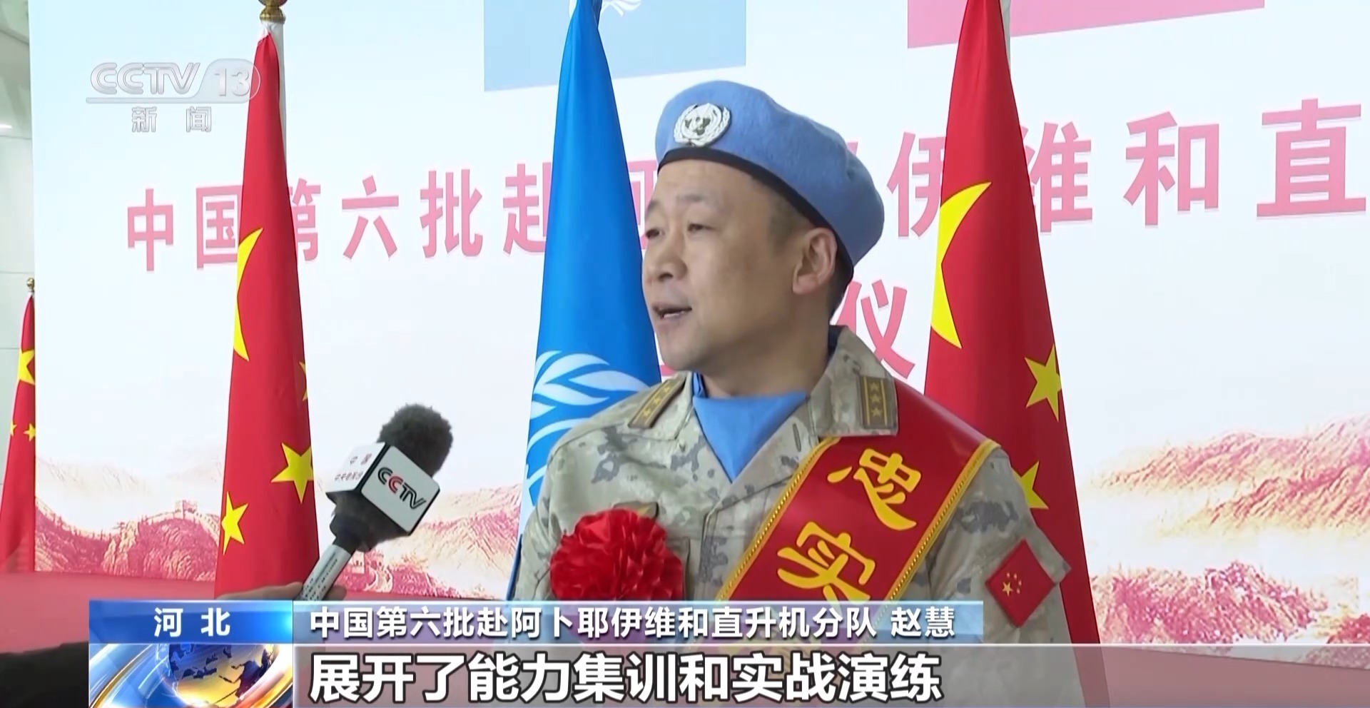 中国驻阿卜耶伊维和直升机第6大队赵辉:该支队成立以来,围绕实际任务区开展了能力训练和野战训练。全体指战员做好了心理准备、行动准备,有能力执行任务。我们要坚决履行使命任务,为世界和平与发展注入更多正能量。